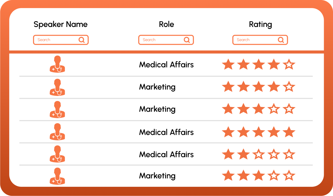 Optimize speaker selection and performance tracking with an integrated speaker evaluation framework in the CRM software.